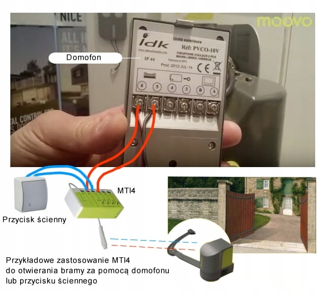 Pozwala na sterowanie napędami Moovo za pomocą np. przycisku dzwonkowego, lub domofonu.